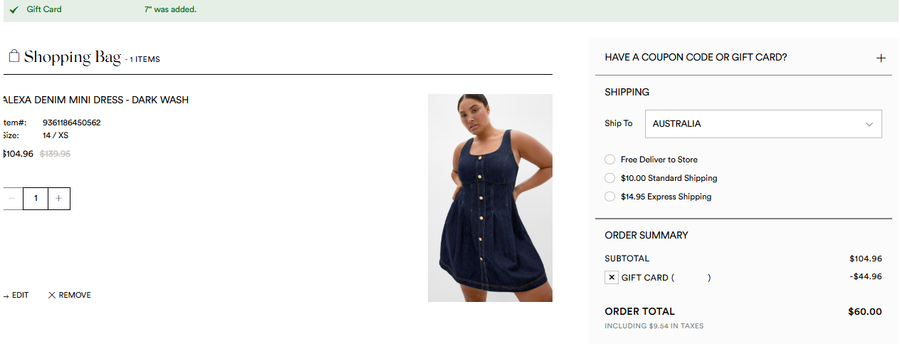 You can add your Gift Card to your cart on the 'Your Bag' page before proceeding to check out.