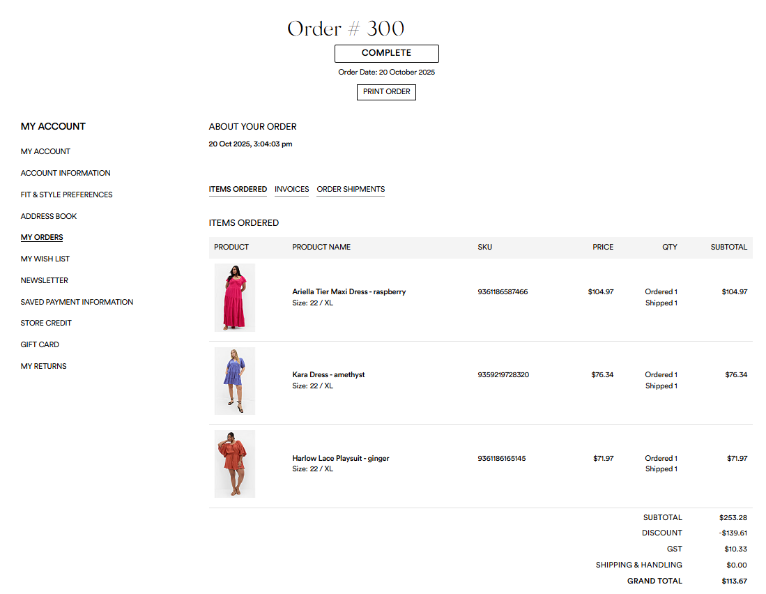 When signed into your City Chic Online Account you can view your Order History by clicking 'My Account and 'My Orders'.